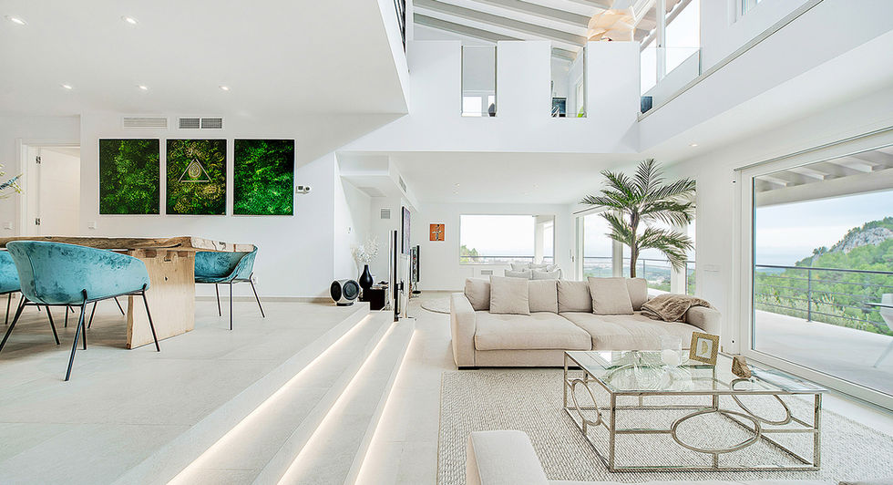 This exceptional luxury villa in Son Vida combines exclusive design, high-quality fittings and incomparable panoramic views of Palma and the sea. The property, which was completely renovated in 2022 using the best materials, extends over three levels and offers around 469 m² of living space on a plot of approx. 1,011 m². Thanks to the active tourist rental license (ETV), it is not only a stylish retreat, but also an attractive investment for up to ten people. An elegant, private driveway leads directly to the garage and the spacious pool and terrace level. The impressive view over the city and the coast opens up from here - whether you are swimming in the approx. 47 m² infinity pool or relaxing with a book on the sun terrace. An adjoining room can be converted into an exclusive spa area if required. Access to the villa on this level is either via the garage or through a glass door that leads to the elegant staircase with elevator. On the middle floor, where the prestigious main entrance is also located, an impressive living area opens up with ceilings over four meters high and an open gallery, which is flooded with light thanks to large window fronts and conveys an airy loft feeling. Two spacious terraces - one facing south, the other with morning shading - provide sunny or shady spots with views of Palma and the sea at any time of day. The living area has a stylish corner fireplace and is adjacent to the open-plan dining area. From there, you enter the fully equipped kitchen with storage room and another bedroom with a French balcony. A further room with its own bathroom, which is currently used as an office, and a guest WC are also located on this level. The top floor offers three further bedrooms, each with its own bathroom, including the spacious master suite. A stylish gallery with a second fireplace area creates space for relaxation, reading or socializing. All floors are connected via the internal elevator, with an additional plate lift to conveniently transport snacks from the kitchen upstairs. The villa is fully air-conditioned, has radiators and two open fireplaces with an optional glass front. The three terraces and balcony offer a total area of around 150 m², complemented by a covered garage for two vehicles. The proximity to the golf course (5 minutes), the old town of Palma (10 minutes) and the airport (25 minutes) makes the location particularly attractive.