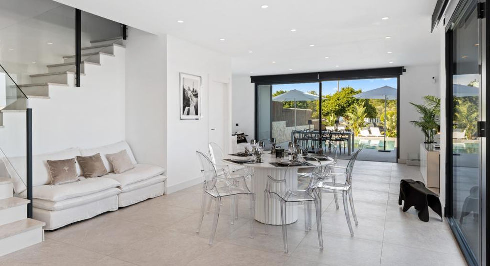This detached single-family house, built in 2021, is located in the sought-after second sea line in the south of Mallorca. Situated on a 435 square meter plot, the property offers 191 square meters of living space. The house features three bedrooms and two bathrooms. For utmost comfort, it is equipped with underfloor heating and air conditioning, powered by an efficient heat pump. A parking space is also available. The high-quality construction is evident throughout the property, and it offers partial sea views. This property combines modern living with an attractive location.